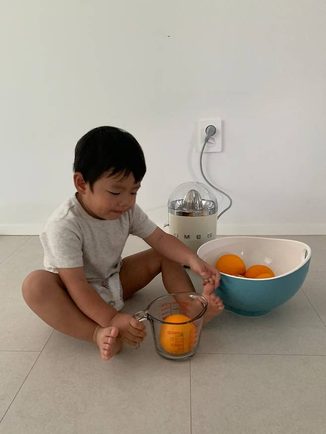 요즘 첫째와 함께 스메그 착즙기로 오렌지 주스 만들어 먹는 재미에 빠졌답니다 :) 안전해서 아이와 함께 만들어 먹기 좋은 것 같아요.
