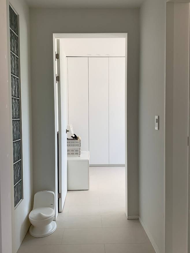 그리고 아이방 앞 그리고 화장실 바로 앞에 아이 변기를 두었어요. 아직 배변 훈련을 제대로 하고 있진 않지만 이제 슬슬 기저귀를 떼고 팬티를 입어야 할 시기가 다가오고 있어 자연스럽게 설치해 두었는데 벌써 이렇게 컸나 싶네요 :)