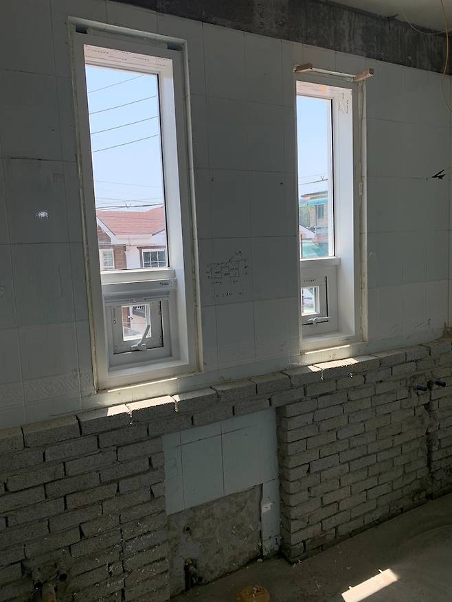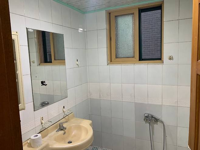 현관 욕실은 창이 세로로 길게 나있는 구조라서 공사후에 보통의 화장실과는 다른 개성있는 공간이 될 것 같아 재밌을 것 같았어요.