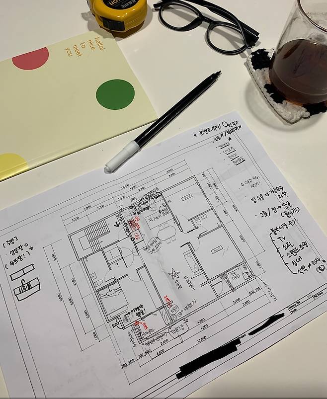 도면을 수십 장 뽑아놓고 수정에 수정을 몇 번이나 거쳤는지 몰라요. 전체적인 가구 배치나 조명, 방의 용도 등 큰 틀은 남편이 짜고 저는 가구 선택이나 수납 장 짜기, 콘센트 위치 등 세세한 부분을 맡았어요.