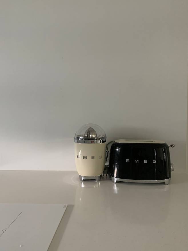 주방 한 켠에는 스메그 오븐과 세트로 스메그 착즙기와 토스터기를 옆에 두었는데 너무 잘 사용하고 있어요 :)