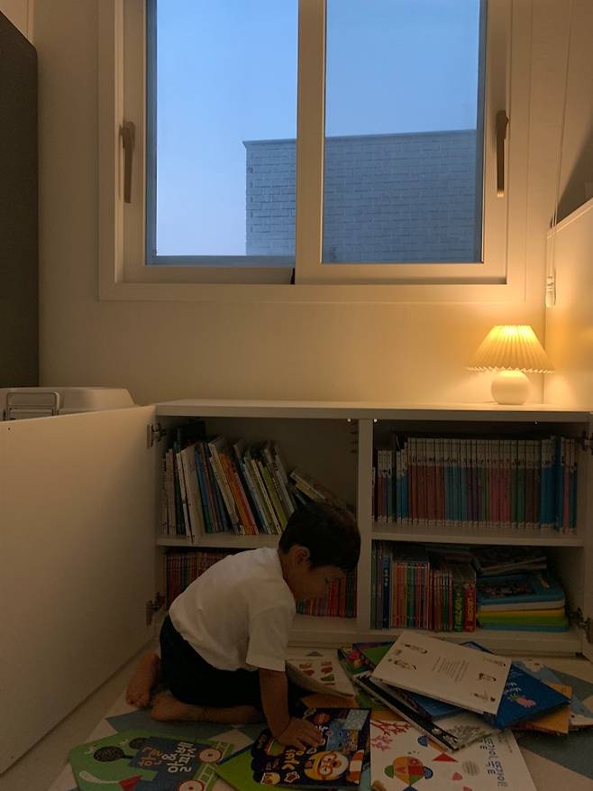 그리고 독서를 너무 좋아하는 아이를 위해 거실 창문 밑에 책장을 두었는데 굉장히 만족하고 있어요!