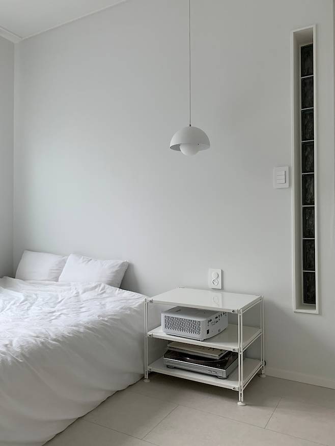 현재 안방의 모습이에요. 안방은 딱 침실이라는 이름에 걸맞게 숙면을 취할 수 있도록 다른 가구 없이 침대만 두었어요.