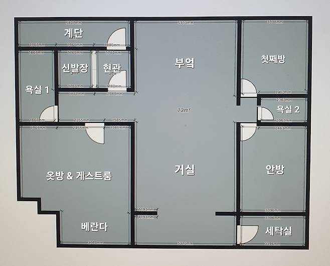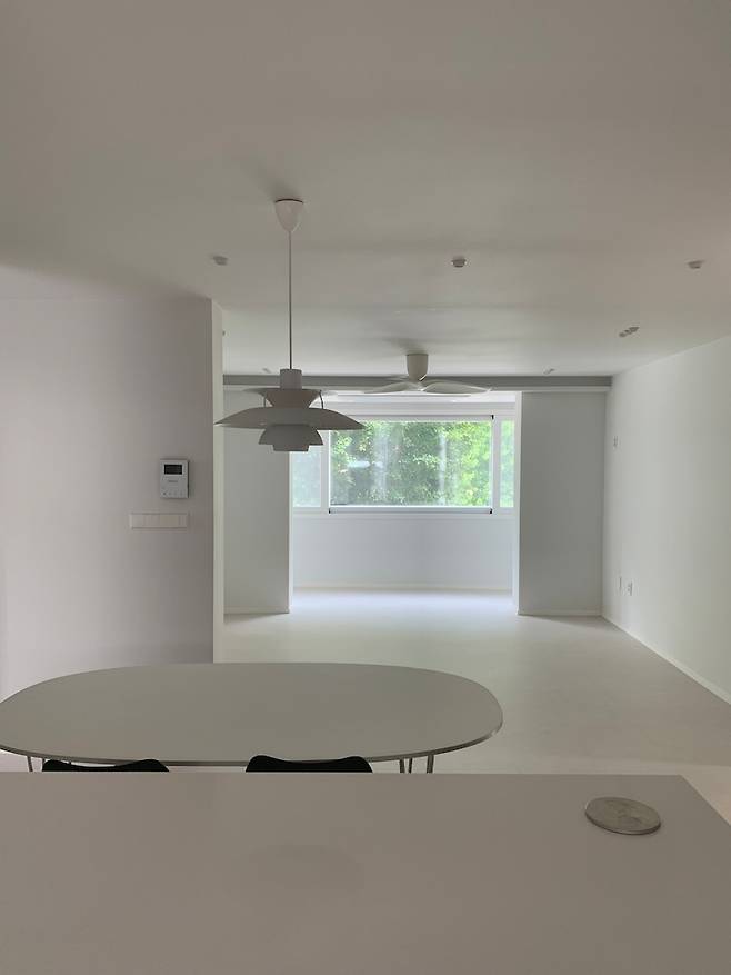 저희 집 거실은 양쪽에 내력벽이 있는 구조여서 건들지 못하기 때문에 확장을 해도 크게 공간감을 느낄수 없을 것 같았지만 안하는 것 보단 나을 것 같아 베란다 쪽을 거실로 쓸 수 있게 확장 진행했어요.