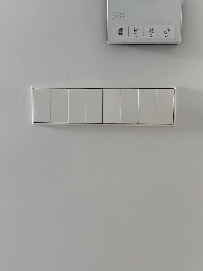 저희가 인테리어를 공부하면서 꼭 하고 싶었던 융스위치에요 ! 거실 및 주방 조명을 한 곳에서 다 관리 할 수 있어서 편하더라구요. 고급스러운 디자인으로 고급호텔이나 레지던스에 특히 많이 사용되고 있다고 들었는데 저희 집이 호텔이 된 것 같아 조명 킬 때마다 기분이 좋아요 :)