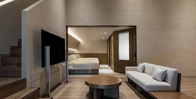 라이프스타일 큐레이션 브랜드 무브먼트 랩에서 만든 숙소인 이곳은 'ㄱㅏㅁ' 과 'ㅅㅓㅁ' 두 가지의 타입의 방이 있다. 정적인 쉼을 하고 싶은 여행객은 'ㅅㅓㅁ' 을, 보다 동적인 쉼을 즐기고 싶은 여행객은 'ㄱㅏㅁ'을 선택하면 된다. 취향에 따라 방의 조도와 내부 분위기도 확연히 다른데, 'ㅅㅓㅁ' 객실은 어두운 톤, 'ㄱㅏㅁ' 객실은 밝은 톤의 조도와 가구를 비치했다. 특히 'ㄱㅏㅁ' 객실은 천장에 뚫린 유리에서 비치는 햇빛을 시간대 별로 다르게 쬘 수 있다. 리빙 브랜드에서 운영하는 숙소이다 보니 웰컴 키트 역시 센스 넘치게 준비되어 있는데, 비어 보틀, 커피&티 키트, 룸 스프레이 등 다양한 선물로 구성되어 있다. 온전한 쉼에 초점을 맞춘 여행을 즐기고 싶다면 꼭 방문하길 추천한다.