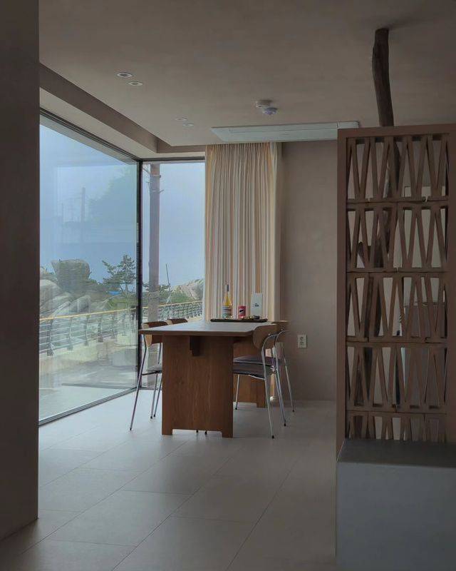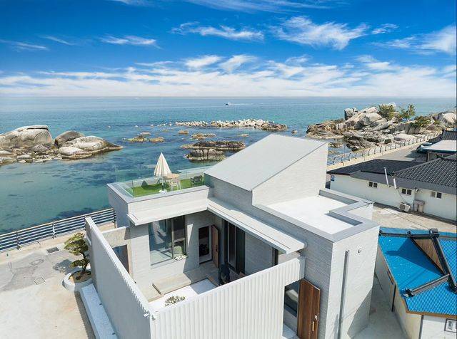 2023년 4월에 오픈한 신상 독채 스테이 어스미어. 대문을 열고 들어가면 흰 자갈과 한 그루의 소나무로 꾸며져 있는 고즈넉한 중정이 있고, 해변에서 묻은 모래들을 씻어낼 수 있는 샤워기도 설치되어 있다. 실내는 전체적으로 차분한 톤과 깔끔한 디자인으로 마음을 안정시켜주고, 탁 트인 통창과 루프탑이 있어 옥빛 바다를 원 없이 눈에 담으며 여유를 즐길 수 있다. 실내 자쿠지도 있어 여행의 피로를 풀며 하루를 완벽하게 마무리할 수 있을 것. 낮에는 바닷가의 활기를, 밤에는 조용하고 차분한 휴식을 즐길 수 있는 독채 숙소니, 시간별로 공간이 주는 색다름을 느끼고 싶다면 방문해 보자.