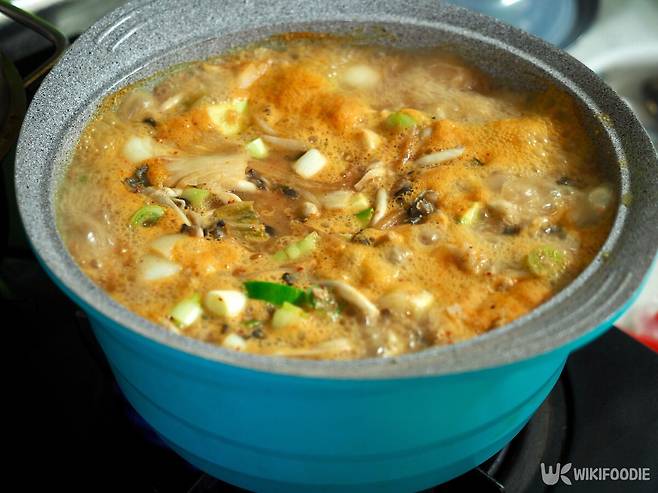 끓기 시작하면 대파, 양파, 청양고추, 두부 같은 재료를 넣고 중불에서 한소끔 더 끓인다. 청국장 특유의 냄새는 끓이는 과정에서 어느 정도 날아가고, 국물에 깊은 맛이 스며든다. 일부는 묵은 김치를 함께 넣어 칼칼하게 끓이기도 한다. 밥에 국물을 자작하게 부어 비벼 먹으면 구수한 맛이 입안 가득 퍼진다.