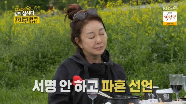 김청은 “미안해 언니 이런 이야기해서. 나보다 더 빠른 사람이 있다고 들었다. 나는 신혼여행 3일 만에 (파경으로) 왔잖아”라고 이경진의 파혼을 언급했다.