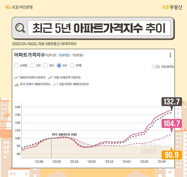 1μ νμ¬ KBμ λμννΈ 50 μ§μλ 132.7λ‘, 23κ°μ μ°μ μ€λ¦μΈλ₯Ό 보μ΄κ³ μμ΅λλ€.