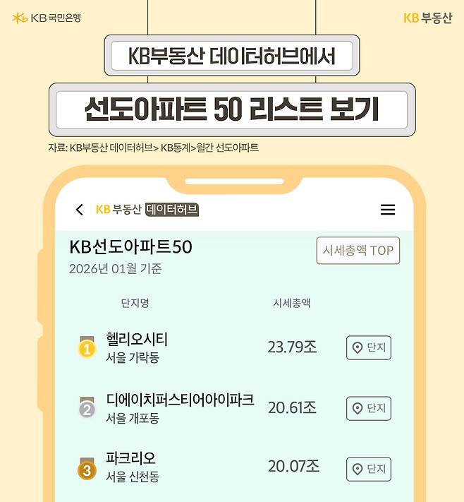 μ κ΅μ λμ₯ μννΈλ₯Ό μ§μΉνλ 'KBμ λμννΈ 50' λ¨μ§ μμμ 리μ€νΈκ° 2026λ