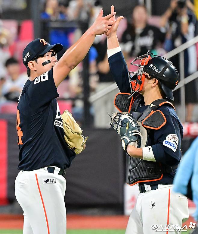 9회말은 마무리 김서현이 나와 그대로 경기를 끝냈다. 로하스를 중견수 뜬공으로 돌려세운 김서현은 허경민에게 루킹 삼진을 솎아냈다. 이어 오윤석까지 삼진 처리하면서 팀의 후반기 첫 승을 완성했다.