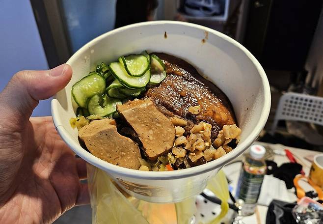 동파육 덮밥집에서 아침밥을 테이크아웃 해 와서