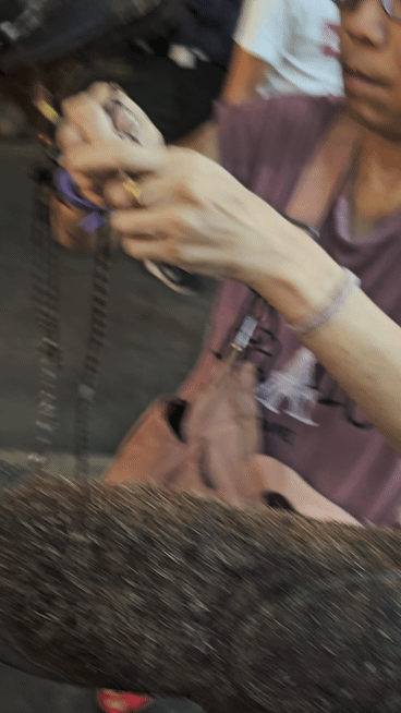 줄 서는 동안 계속 연습했던 네 문장을 필사적으로 구사