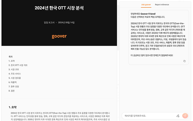 맞춤형 정보를 찾고, 심층 리포트까지 확인할 수 있는 Goover