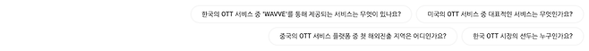 구버는 익숙한 듯, 익숙하지 않은 인터페이스를 갖고 있어요. 질문을 입력하는 방식은 퍼플렉시티 등과 유사하지만 사용자 개인을 위한 큐레이션 콘텐츠가 함께 적용된 점은 유사 서비스에서 만나보지 못한 구성이기 때문이에요. 저는 콘텐츠 산업에 대해 알고 싶었고, 그중에서도 OTT 산업 현황에 대한 내용을 확인해 봤어요.