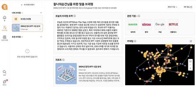 - 리포트 : 브리핑 주제와 관련된 리포트를 주기적으로 생성