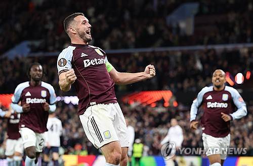 epa12405711 John McGinn of Aston Villa celebrates scoring the 1-0 goal during the UEFA Europa League league phase match between Aston Villa and Bologna FC 1909, in Birmingham, Britain, 25 September 2025. EPA/ADAM VAUGHAN