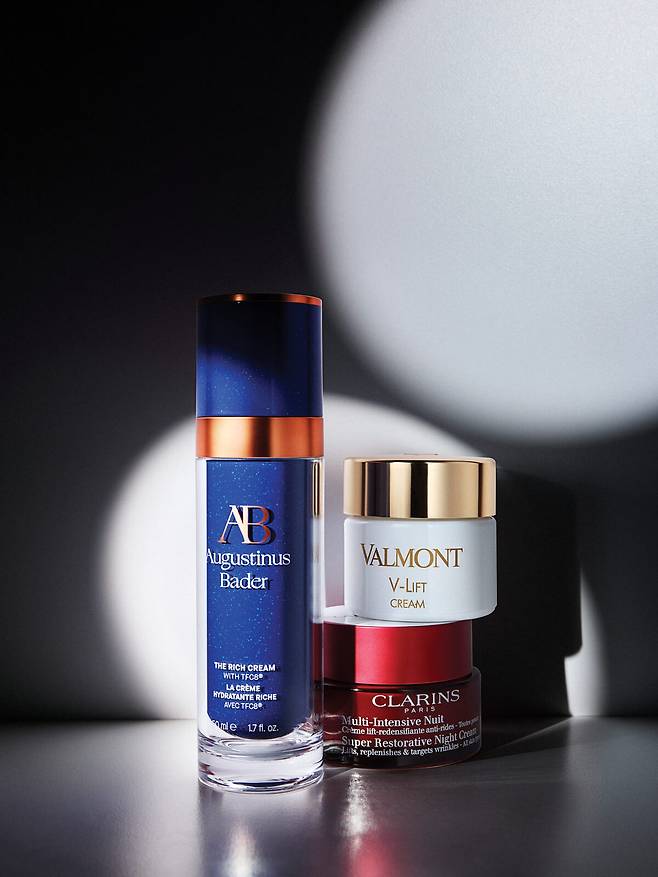 AUGUSTINUS BADER 더 리치 크림 바더 교수가 30년간 연구한 끝에 발견한 TFC8Ⓡ이 주성분인 시그너처 크림으로, 피부 본연의 힘을 활성화하는 데 효과적이다. 고효능 제품이지만 유해 의심 성분은 찾아볼 수 없는 클린 제품으로, 민감한 환절기 피부의 필수품이 될 예정. VALMONT 브이-리프트 크림 정확한 위치에 성분을 전달하는 신기술 드론 펩타이드 테크놀로지를 적용해 새롭게 업그레이드된 발몽 최초의 스킨케어 라인. 굴곡진 피부 속 타깃 부위에 정확하게 유효 성분을 전달하고 안티-링클 스타 성분이 시너지를 내 피부에 편안하게 작용하면서도 강력한 효능을 느낄 수 있다. CLARINS 수퍼 레스토러티브 나이트 크림 안티 링클 케어와 브라이트닝 케어 효과를 동시에 발휘하는 스마트한 듀얼 액션 크림에 주목할 것. 하룬가나와 울렉스 추출물을 조합한 식물 유래 성분이 자는 동안 전문가에게 관리받은 듯 탄력 있고 투명한 피부로 회복시킨다.