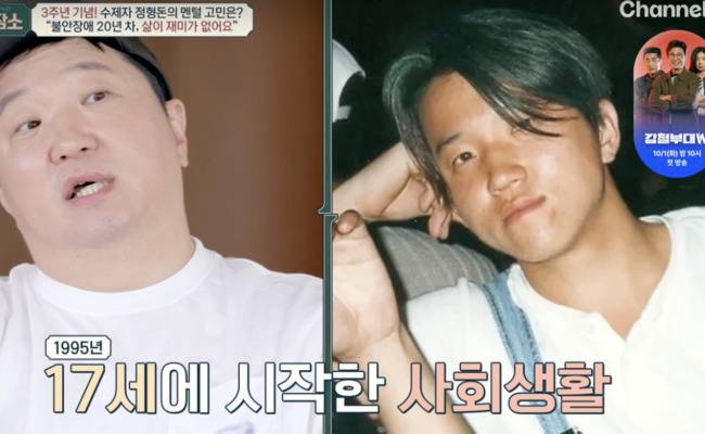 지금 몸이 괜찮은지 묻자 정형돈은 어느덧 약 20년째 불안장애를 앓고 있는 상황을 전했다. 원래 타고난 외향인이었으나 국민예능 핵심 멤버로 활동하며 고충이 많았던 정형돈은 “방송인으로 황금기, 딱 한번 온다는 전성기에 활동 중단을 했다”며 “한 동안 자책도 했다, 다른 분들은 잘 이겨내는데 왜 나는 이렇게 나약하게 태어났나싶었다”고 했다.