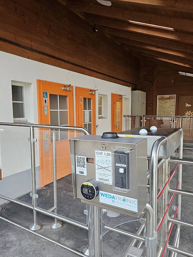 그래서 유럽에서 현금 지폐는 없어도 동전은 몇 개 가지고 있는 게 좋다. 화장실 입구에 동전을 넣고 들어가게끔 되어 있는데 주변에 아무리 둘러봐도 동전 교환기는 없다. 때문에 가급적 화장실은 식당이나 카페 이용할 때 미리미리 화장실을 다녀오는 습관을 들이는 게 낫다. 가끔 이런 곳에서도 화장실 사용료를 요구하는 곳이 있다고 하니 참고해야 한다. 한 번은 소변이 마려워 스타벅스에 커피 주문하러 들어가는 척하면서 화장실을 순서대로 다녀오기도 했다.