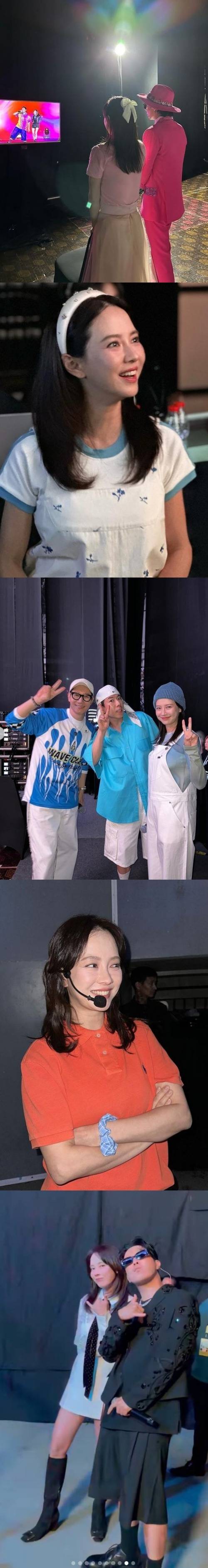 공개된 사진 속 송지효는 핑크색으로 맞춰 입고 공주 같은 비주얼을 자랑했다. 또 유재석의 부캐 유산슬과 함께 다정한 투샷을 찍어 팬들의 눈길을 끈다.