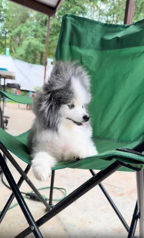 잔잔한 햇살이 드리운 야외 공간, 접이식 캠핑 의자 위에 작고 복슬복슬한 강아지 한 마리가 앉아 있습니다. 따로 만든 무대도, 꾸며진 연출도 없는데—그 장면은 그 자체로 완벽한 사진 한 장처럼 느껴집니다. 그리고 그 분위기를 완성시켜주는 건, 바로 불어오는 바람.