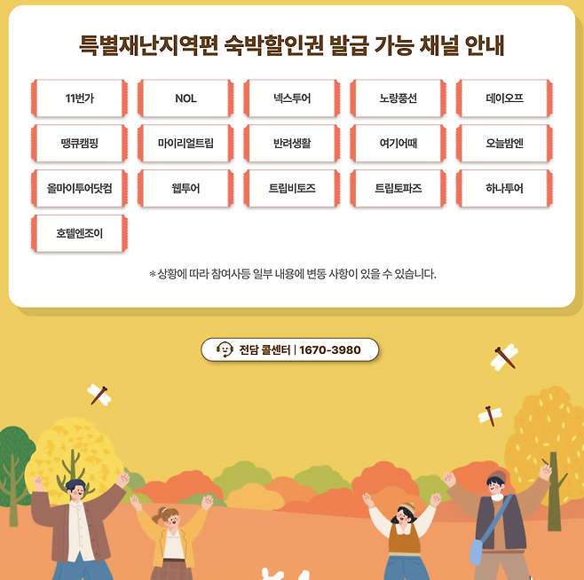 사용 조건은 비교적 간단하지만 반드시 유의해야 할 점도 있습니다. 쿠폰은 발급 후 다음 날 오전 7시까지 예약과 결제를 완료해야 유효하며, 대실이나 등록되지 않은 숙소에서는 사용할 수 없습니다. 특히 가을편과 재난지역편은 중복 발급이 불가능하므로, 여행 목적지에 따라 혜택이 더 큰 쪽을 선택하는 것이 유리합니다.