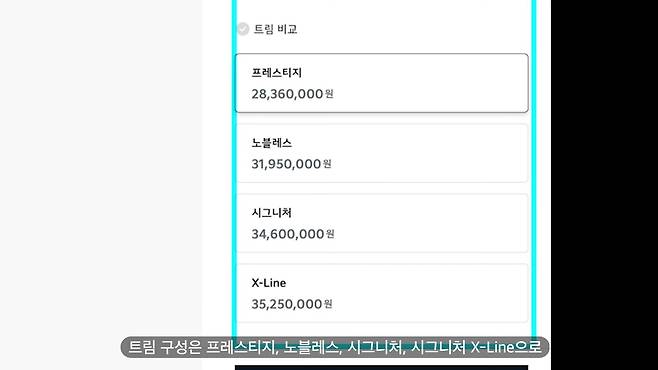트림 구성도 프레스티지, 노블레스, 시그니처, 시그니처 X-Line 등으로 다양화되었다. 트림별로 제공되는 편의 사양과 고급 사양이 달라 고객의 취향과 라이프스타일에 맞춰 선택할 수 있게 되었다.