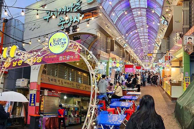 구미 새마을중앙시장은 새마을 정신을 간직한 전통시장입니다. 한복 골목, 국수 골목, 족발 골목, 순대 골목 등 특화 골목별로 조성되어 있어 다양한 맛집을 즐길 수 있습니다.