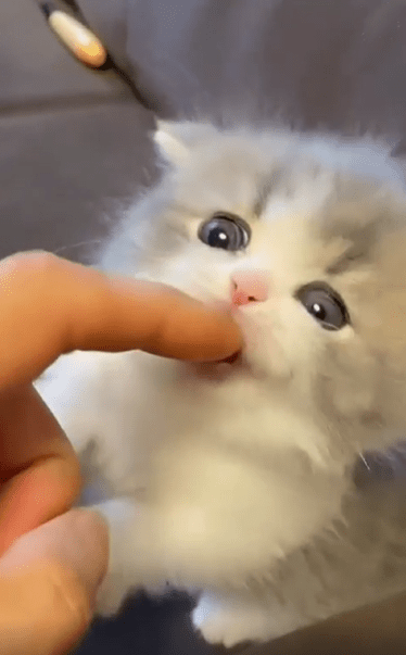 포근한 소파 위, 아직 세상에 익숙해지지 않은 새끼 고양이 한 마리가 있습니다. 털은 복슬복슬하고 눈은 호기심으로 가득한 그 모습. 그런데 고요한 순간도 잠시, 주인의 손가락이 고양이 앞에 살짝 다가가는 순간, 장면은 전환됩니다.