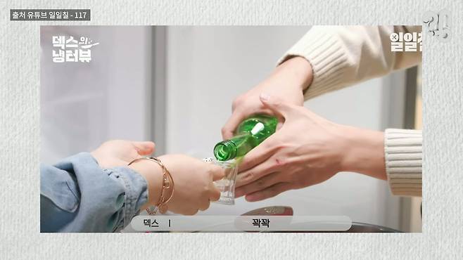 이 사진을 보라. 덱스가 ‘주도(酒道)’에 대해 설명하는 모습. 주도란 술자리에서 지켜야 할 도리와 예절을 의미한다. 술을 마실 때 고개를 살짝 돌리거나, 두 손으로 술잔을 받는 식.