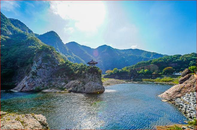 월류봉광장에서 출발해 조강천과 석천이 만나는 여울의 소리를 따라 걷습니다. 절벽 끝에 자리한 월류정과 함께 다섯 봉우리가 만들어내는 풍경은 이 길의 하이라이트입니다.