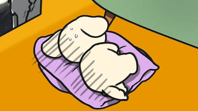 강아지도 몸 상태가 별로라면 쉬고 싶어합니다.
