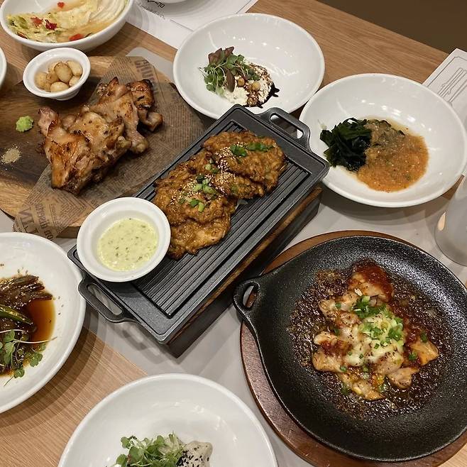 닭 코스요리로 다양하고 새로운 닭 요리를 맛볼 수 있는 순천 덕월동 'The미주농원120'. 나무를 최대한 살리는 방법으로 지어진 건물로 뷰가 아름다운 식당이기도 하다. 대표 요리로는 닭 코스요리. 상차림으로는 계절 샐러드, 새우장, 꼬막장, 겉절이, 냉채, 생선찜 등이 차려지고 코스요리로는 마늘 양념 닭구이, 화덕 귀리 떡갈비, 닭날개 간장치킨, 매콤한 불닭, 닭무침, 녹두닭죽, 후식 순으로 차려진다. 코스마다 어울리는 소스가 함께 나오는 것도 특징이다. 보기 좋은 떡이 먹기도 좋다는 말이 딱 어울리는 정갈한 맛집이다.