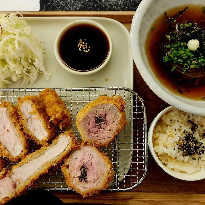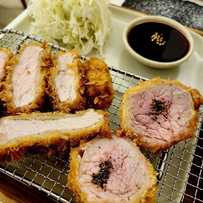 일본식 돈카츠 전문점 행동 '수수하지만 굉장해'. 노후된 주택을 개조해 따뜻한 느낌이 가득한 가게 안은 귀여운 강아지 그림으로 가득하다. 메뉴는 고민할 필요 없이 단일 메뉴로 1인 정식만 인원수 대로 판매한다. 1인 정식에는 소바와 디저트를 포함하고 샐러드와 공기밥, 안심, 등심, 특등심이 함께 나온다. 겉은 바삭하게 튀겨내고 속은 촉촉함을 유지해 부드러운 돈까스는 안심부터 먹기를 추천한다. 함께 나오는 소금과 와사비, 고추 장아찌와 함께 먹으면 잘 어울려 입안 가득 맛의 풍미를 더 잘 느낄 수 있다.