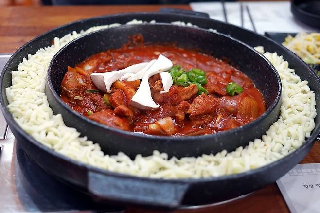 중독성 있는 맛있게 매운맛으로 순천인들의 사랑을 받고 있는 연향동 '백두산갈비'. 매운 갈비찜 전문점으로 왕순한맛부터 순한 맛, 중간 맛, 매운맛 중에 선택해서 먹을 수 있다. 일반 매운 갈비찜, 묵은지 매운 갈비찜, 치즈 매운 갈비찜, 치즈 묵은지 매운 갈비찜 등 4가지 메인 메뉴도 인기지만 식사 메뉴인 매운 돼지찌개도 인기다. 묵은지가 들어가는 메뉴에는 3년 된 묵은지를 사용하고 국내산 고춧가루를 사용해 맛이 깔끔하다. 국내산 돼지고기가 듬뿍 들어간 돼지찌개는 밥 한 공기는 모자랄 정도로 밥과 잘 어울린다.