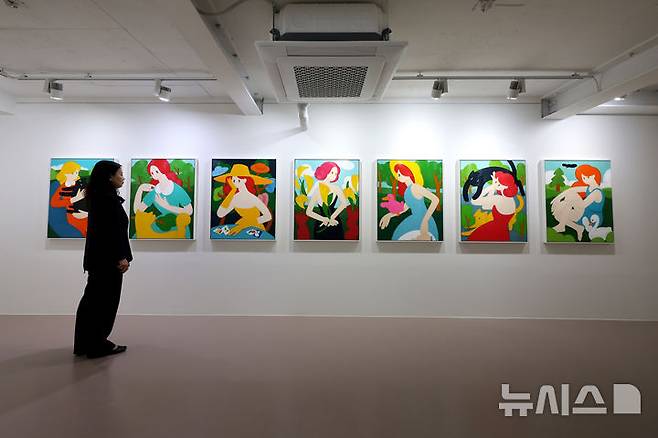[서울=뉴시스] 박진희 기자 = 호리아트스페이스는 삼청동 이전 첫번째 전시인 임희조 개인전 '서툰행복'을 18일 서울 종로구 삼청동 호리아트스페이스에서 개최하고 30점의 회화 작품을 선보인다. 2025.04.18. pak7130@newsis.com