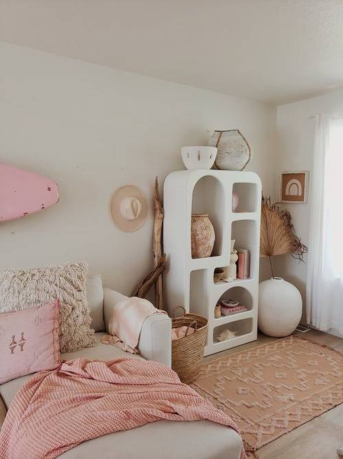 벽걸이형 장식장이나 미니 선반은 좁은 공간에서도 존재감을 발휘한다. 특히 오브제 컬러에 맞춰 선반 디자인을 통일하거나 곡선을 강조하면 고급스러움을 더할 수 있다. 공간이 부족하더라도 벽면 하나만 있으면 분위기를 바꿀 수 있다.