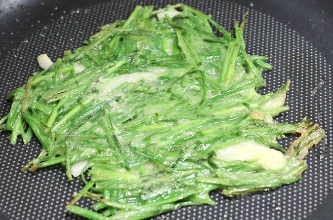 3. 불을 끄기 직전에 부추를 넣고 30초만 익힙니다.