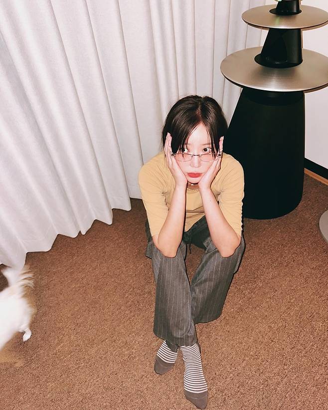 베이지 톤의 티셔츠와 스트라이프 패턴 팬츠를 매치한 임수향의 룩은 클래식하면서도 편안한 분위기를 자아낸다. 여기에 스트라이프 양말과 뾰족한 플랫 슈즈를 더해 디테일을 살렸으며, 실내 공간에서 자연스러운 포즈로 소박하면서도 세련된 이미지를 연출했다.