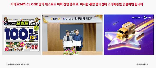 이미 지난 1월, 이마트24에서 CJ ONE 포인트 적립·사용이 가능한 제휴가 시작된 바 있습니다. 본격적인 통합 이전의 테스트처럼 보이기도 하죠. 이런 형태의 협업은 시기만 정해지면 언제든 확대될 수 있어 보입니다.