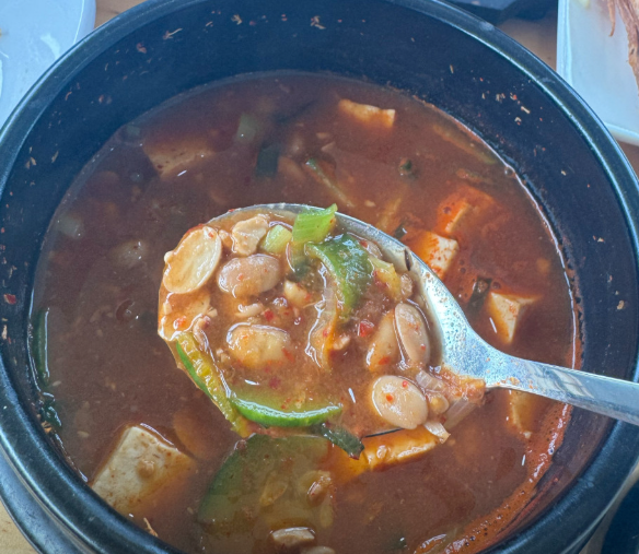▶ 찌개집에서 끓인 듯 구수하고 자극적이지 않아 계속 떠먹게 되는 맛