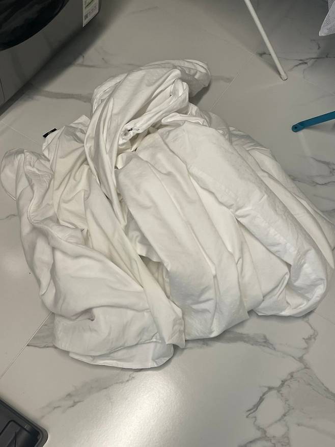 오늘의 빨래는 침대 시트커버입니다! 하얀 커버다 보니, 푹푹 삶듯 빨아야 할 것 같죠?
