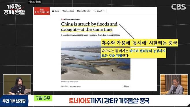 ◆ 홍종호> 중국 우리나라 남한 땅에 95배 엄청난 큰 나라니까 한 나라 안에서 홍수도 나고 가뭄도 나고 막 이러나 보죠?