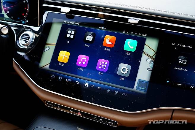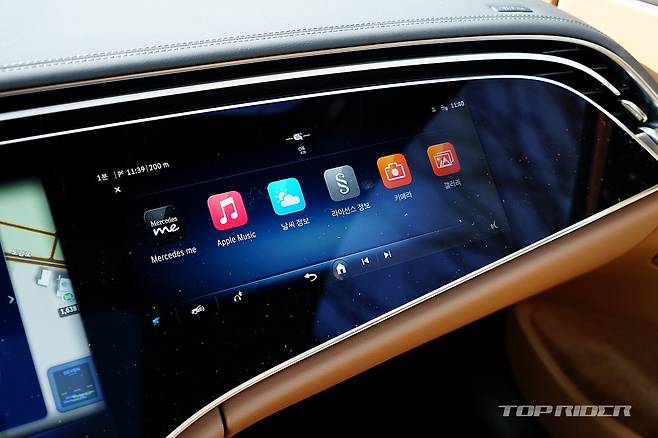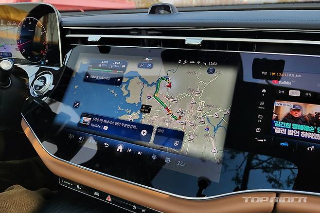 중앙 디스플레이 내의 앱 아이콘은 아주 커다란 크기로 표시돼 ATM 기계의 큰 글씨 모드와 유사하다. 다만 물리 버튼이 대부분 디스플레이에 통합돼 운전하는 상황에서 운전자가 기능 조작을 하는 일은 쉽지 않다. 티맵 내비게이션은 하반기 출고되는 차량부터 적용된다.