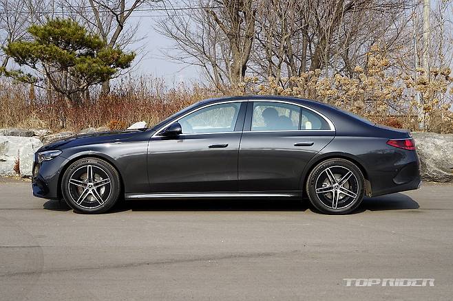 신형 E클래스의 전체 실루엣은 기존 E클래스(W213)와 아주 유사하다. 전장 4955mm(+15), 전폭 1880mm(+20), 전고 1475mm, 휠베이스 2960mm(+20)다. 제조사는 운전석 헤드룸 5mm, 뒷좌석 레그룸 17mm, 뒷좌석 너비 25mm 증가했다고 밝혔지만 체감상 유사하다.