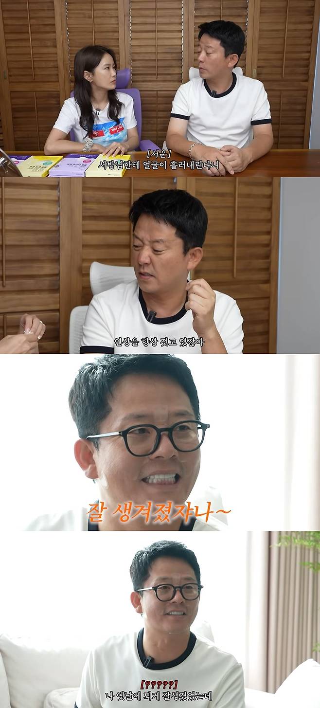 김준호를 본 김지민은 "사랑받으니까 잘생겨지잖아. 사랑이 되게 중요한 거 같아"라고 이야기했고, 김준호는 "나 옛날에 되게 잘생겼었는데"라며 회상했다.