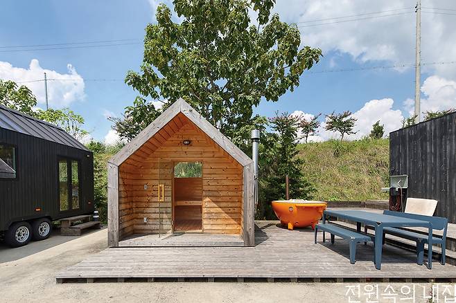 가든 사우나와 아웃도어 욕조