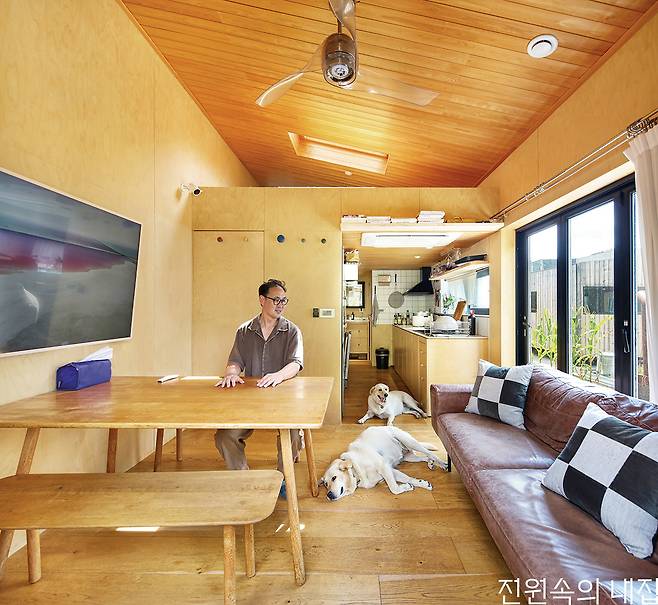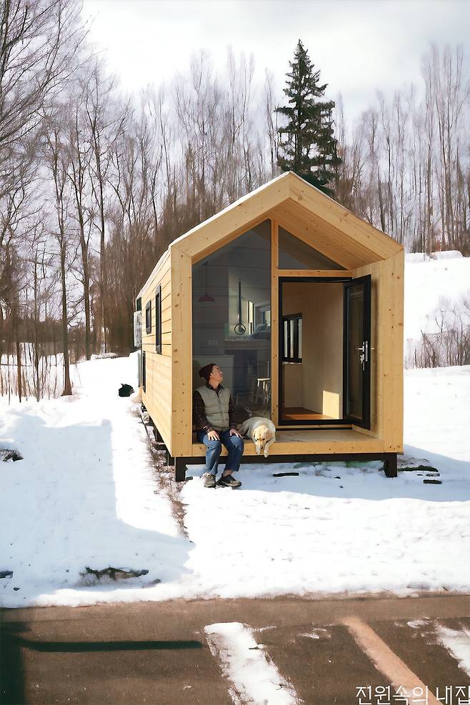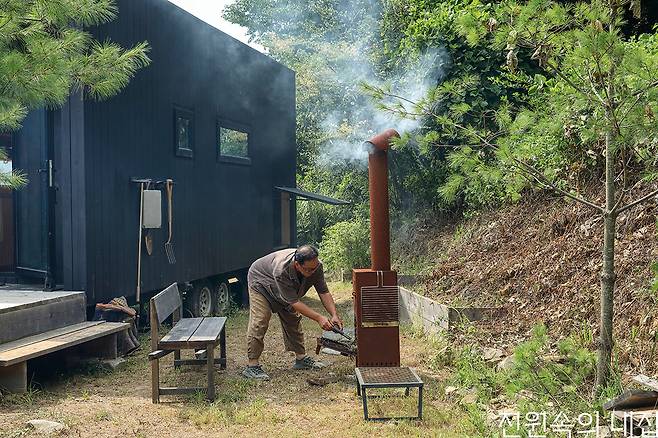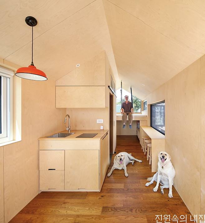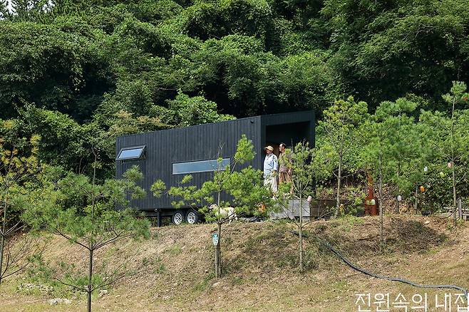 오지에 설치한 정박형 바퀴 달린 집은 부부와 반려견들이 함께 하는 아지트가 되었다.